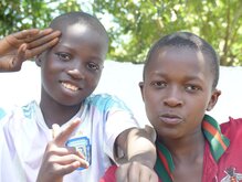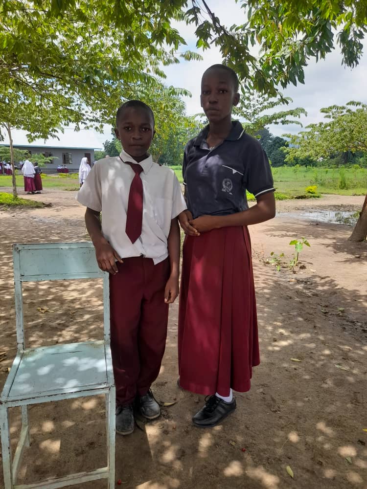 Links ist Erick mit Veneranda in der Karunga Secondary School (linkes Bild) und rechts mit seinem Freund Ashrafu beim MACHICA-Fund.