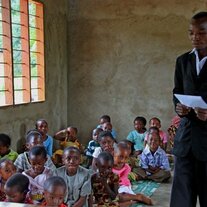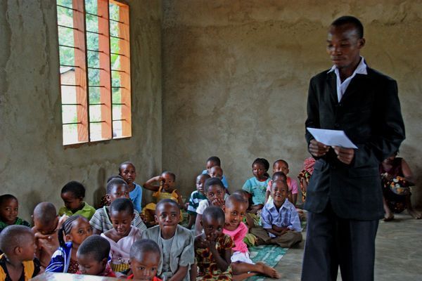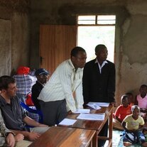 Der Lehrer Bonface heißt die deutschen MACHICA-Freunde in Mang'ula willkommen.