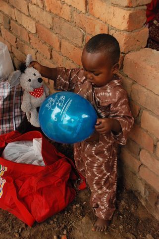 Andere Dinge, die aus Deutschland mitgebracht wurden, werden gezeigt, wie z.B. Stofftiere, Bälle oder T-Shirts.