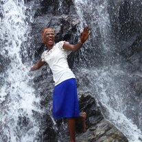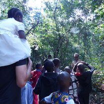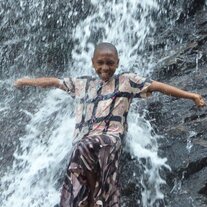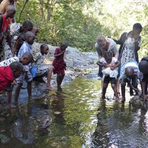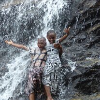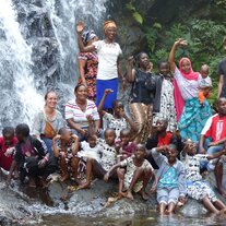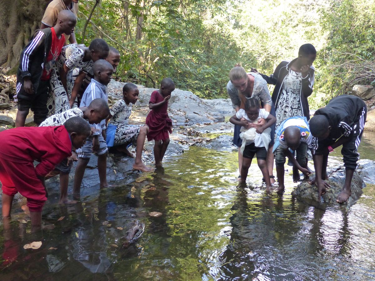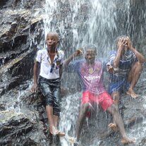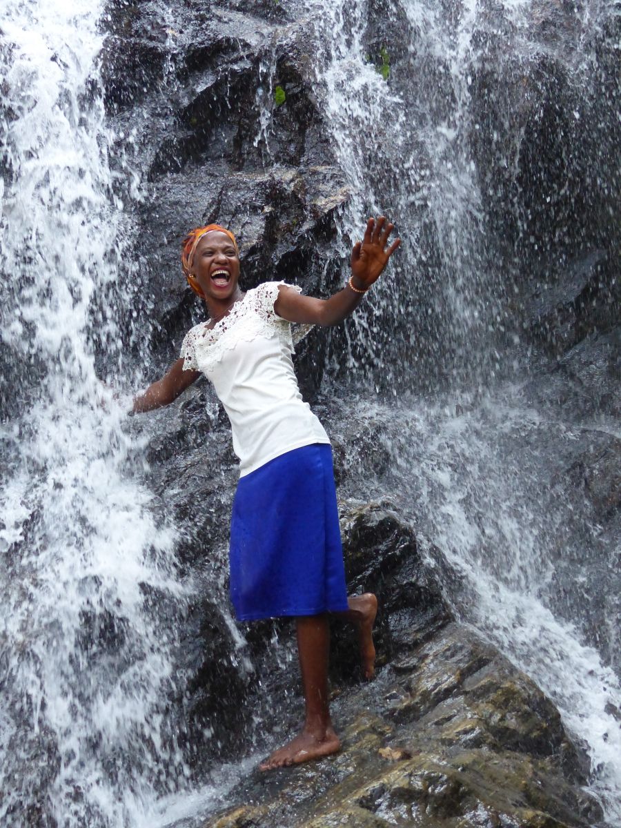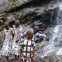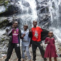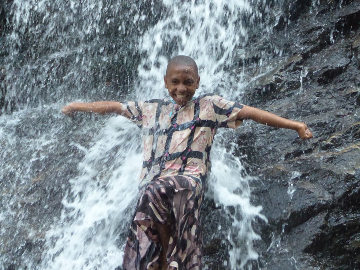 Mustafa, Modestus, Ashraf und Noella am Wasserfall